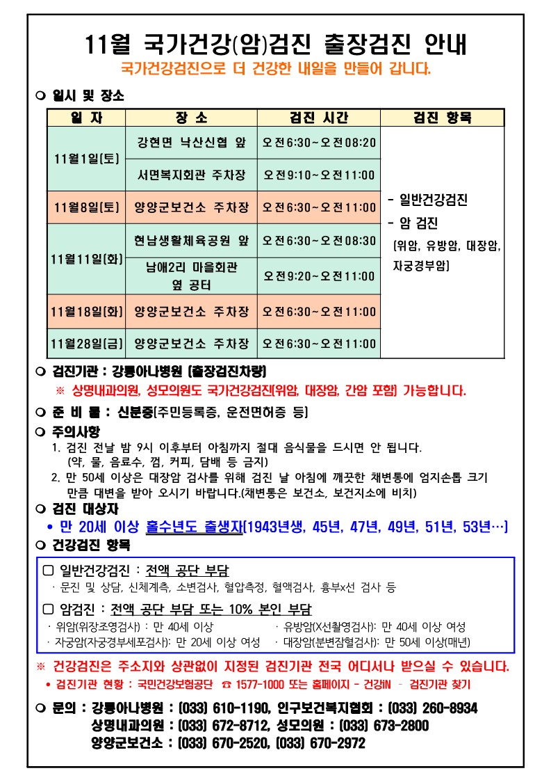 ★ 건강검진은 주소지와 상관없이 지정된 검진기관 전국 어디서나 받으실 수 있습니다.★