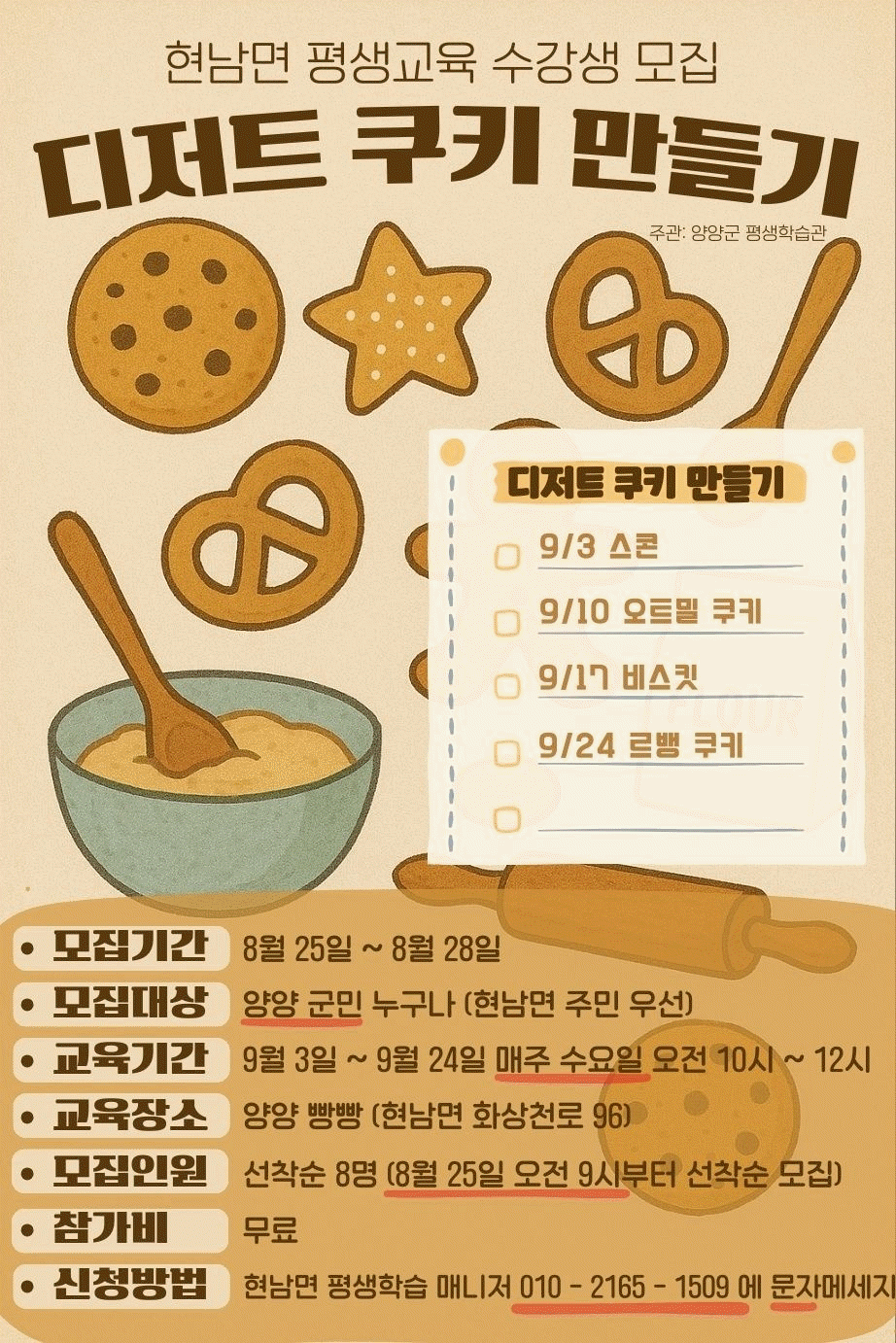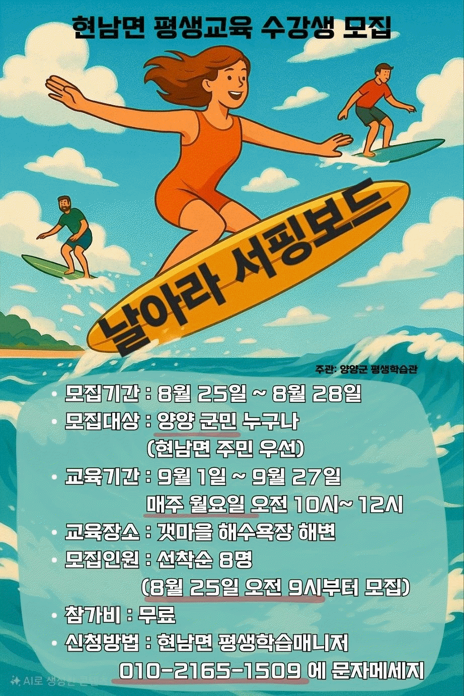 현남면 평생학습센터 프로그램 수강생모집(서핑, 디저트만들기)
