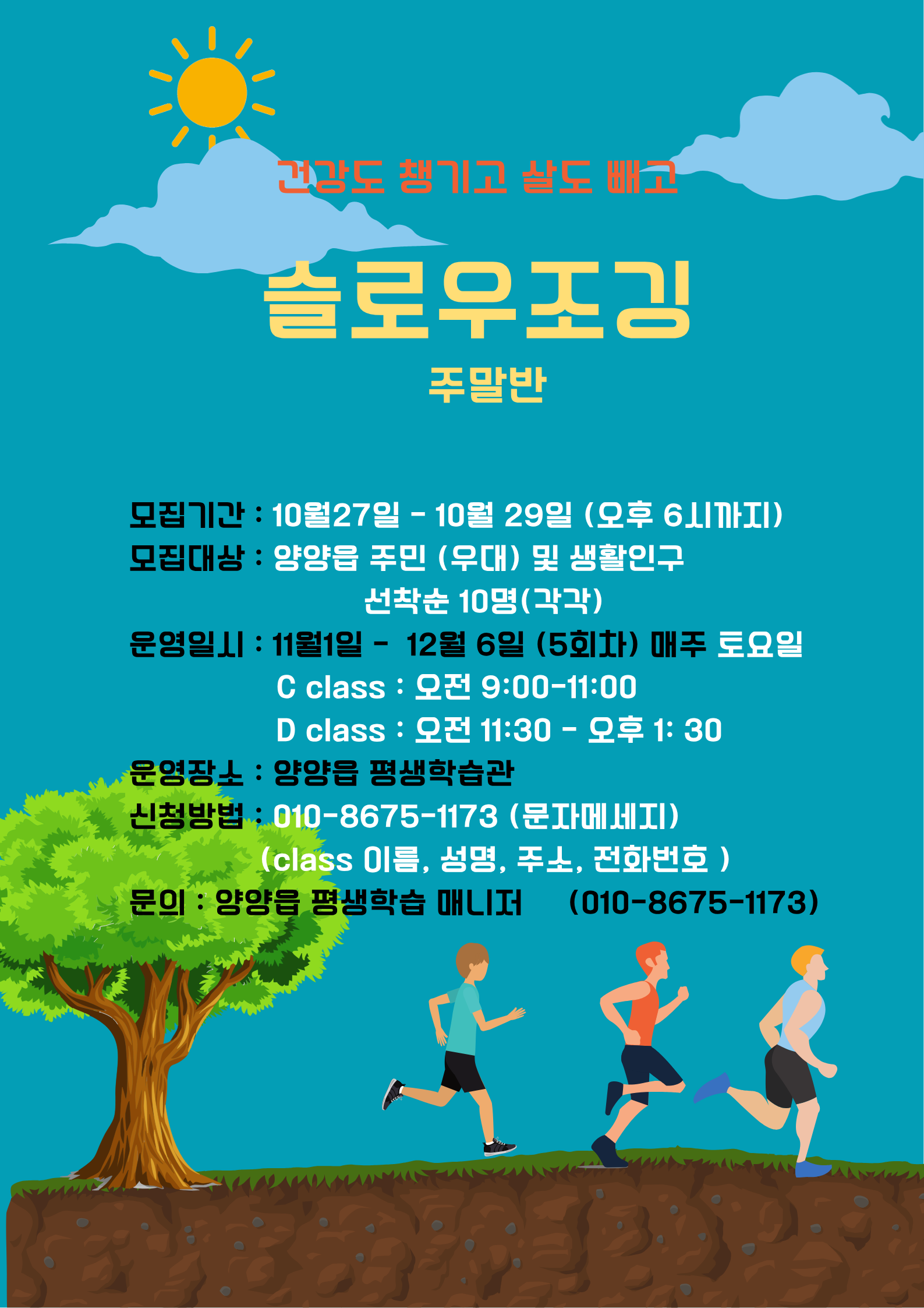 양양읍 평생학습센터프로그램 주말수강생 모집(슬로우 조깅)